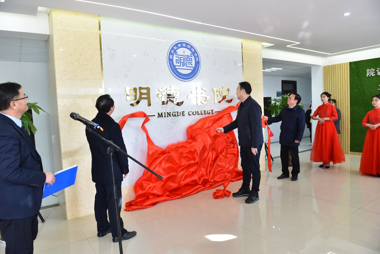12月27日下午,华亿在线体育(中国)官方网站明德书院揭牌仪式在我校明德书院一楼大厅隆重举行。校长任文杰,校党委副书记郝红军,校党委委员、副校长雒保军,学校书院制改革领导小组各成员单位负责人、明德书院全体职工和学生代表参加揭牌仪式。揭牌仪式由党委学生工作部负责人主持。
