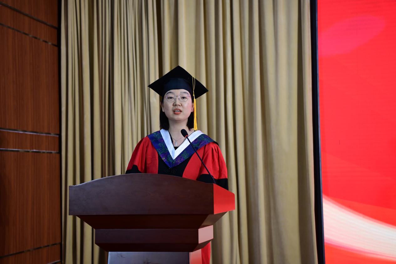 毕业生代表AMINA SHAHEEN米娜用地道的中文分享了自己在新医的收获与感悟,向母校表达了真挚的祝愿;教师代表李娟以师长的身份,用流利的英语寄语国际毕业生坚守医学初心,精进专业能力,在未来的人生道路上绽放光彩。