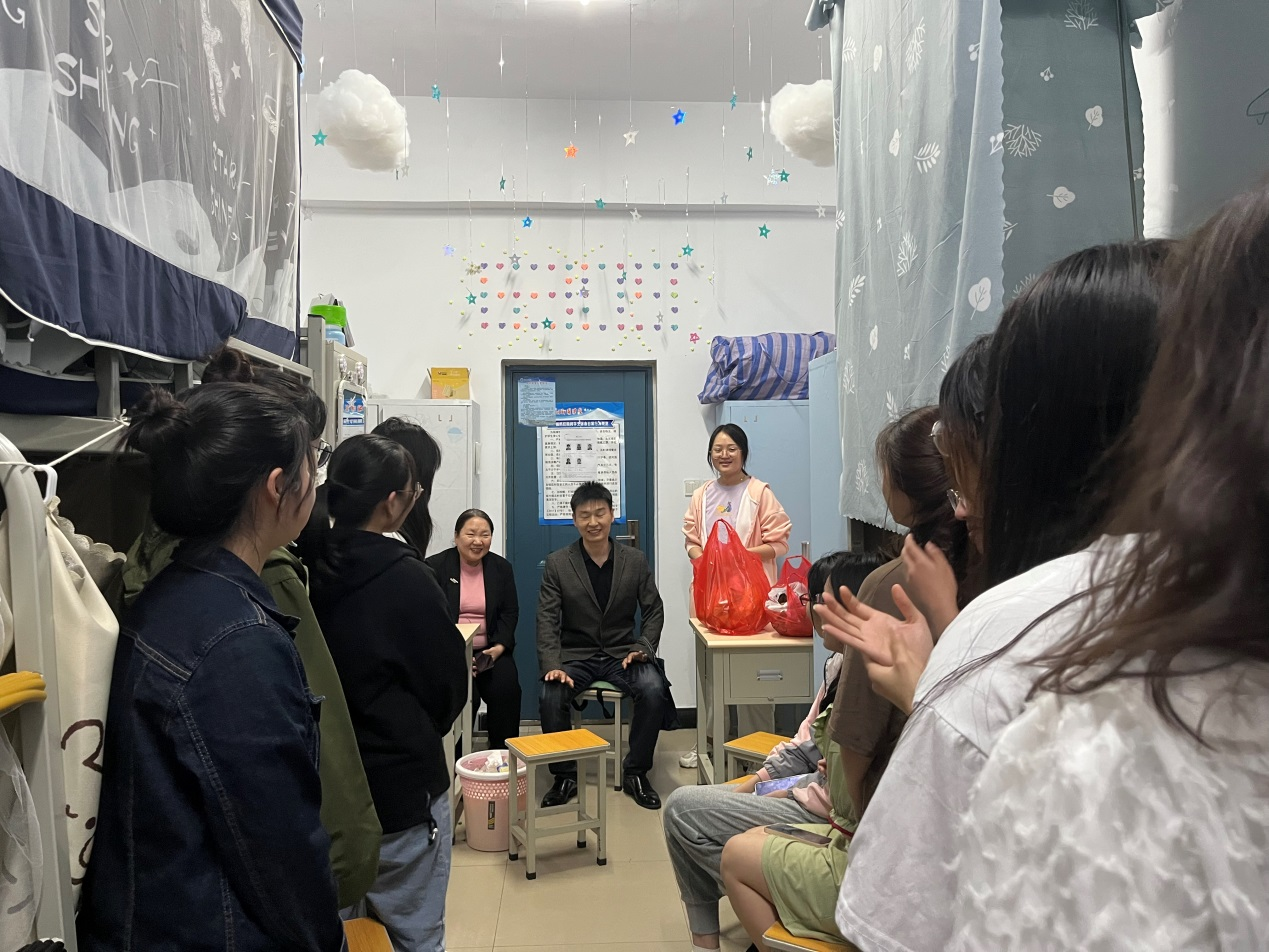 活动结束后,曹坤明副院长一行前往2022级助产学学生宿舍走访慰问。虽然2022级的同学们未能到达活动现场一起体验游戏的欢乐,但老师们也为她们带去了节日的祝福,并且在学生宿舍以适当的方式进行了联欢。