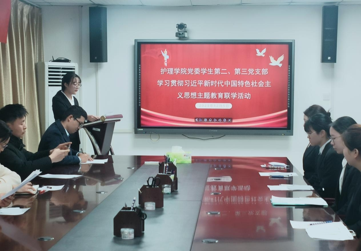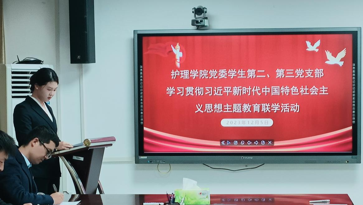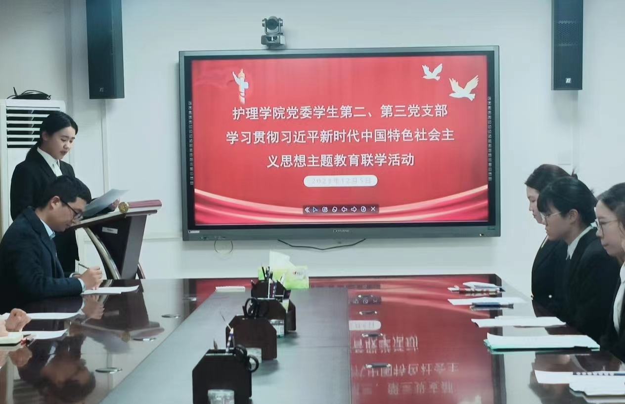 为深入开展学习贯彻习近平新时代中国特色社会主义思想主题教育,扎实推进党员发展工作,深化预备党员的党性教育,激发预备党员的责任感、使命感。2023年12月5日,护理学院学生第二、第三党支部举行新党员入党宣誓仪式暨“学习贯彻习近平新时代中国特色社会主义思想主题教育”联学活动。护理学院党委副书记王剑英、护理学院副院长曹坤明、护理学院学生第二、第三党支部委员及部分老党员代表、10名新发展党员及入党积极分子代表参加,仪式由学生第二党支部黄广同志主持。
