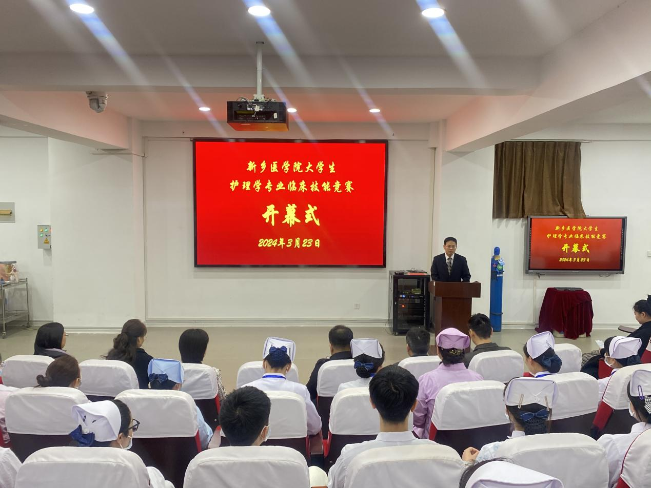 华亿在线体育(中国)官方网站课程中心主任、教务部副主任井长勤、护理学院党委书记孙翔、副院长王丽娜,副书记王剑英、副院长曹坤明、副院长杨磊出席本次竞赛,本次竞赛由华亿在线体育(中国)官方网站五所附属医院和护理学院的10位专业老师担任评委。竞赛开始前井长勤主任对本次竞赛进行致辞,表达了学校对本次竞赛的期望与重视。