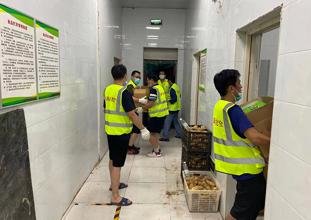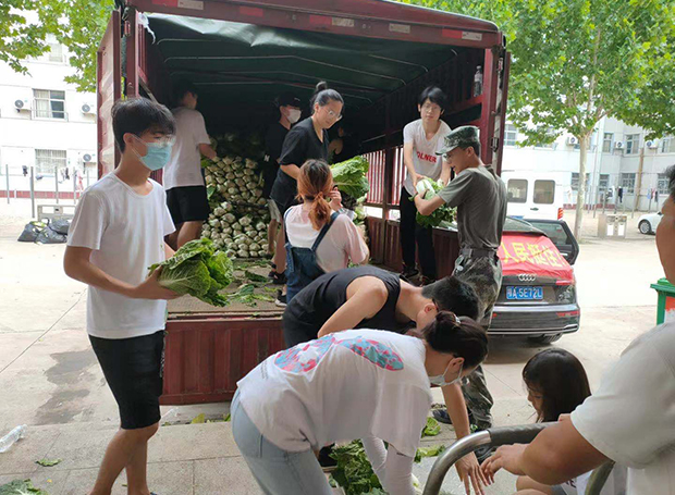 一大早,在我校第一餐厅门口,志愿者们挥汗如雨、汗流浃背,将一辆货厢车内的新鲜蔬菜,一筐一筐的搬下来,动作娴熟流畅。大家时不时地抬起胳膊蹭一把顺着脸颊往下流的汗。