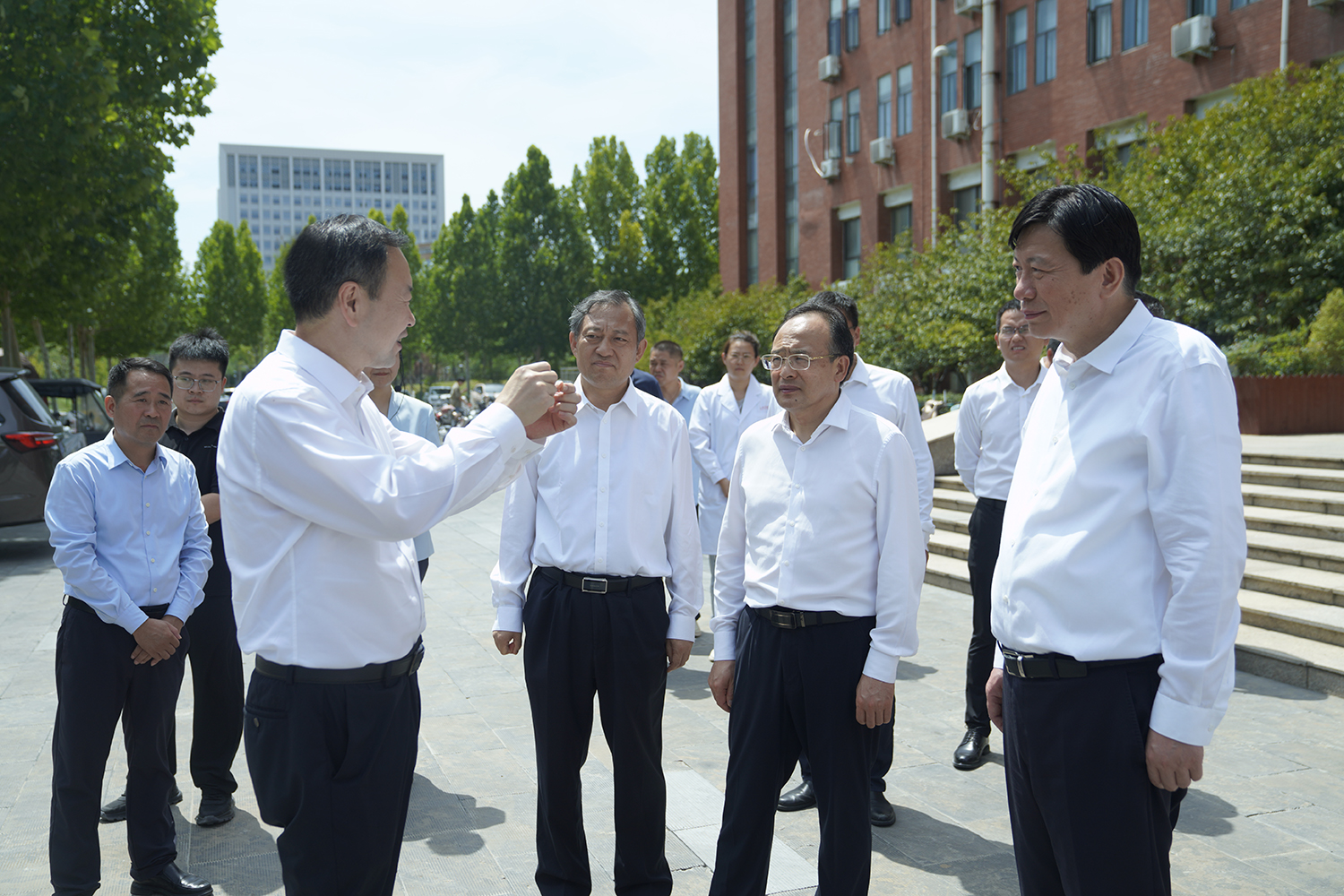 新乡市四大班子领导先后来到我校国家高等学校学科创新引智基地、中原再生医学实验室、重组蛋白药物实验室、干细胞与生物治疗技术研究中心、精神神经研究院等实验室和科研机构,调研考察创新平台建设、科技成果转化和高层次人才队伍建设等情况,对我校近年来科技创新及成果转化工作取得的成绩表示高度肯定。