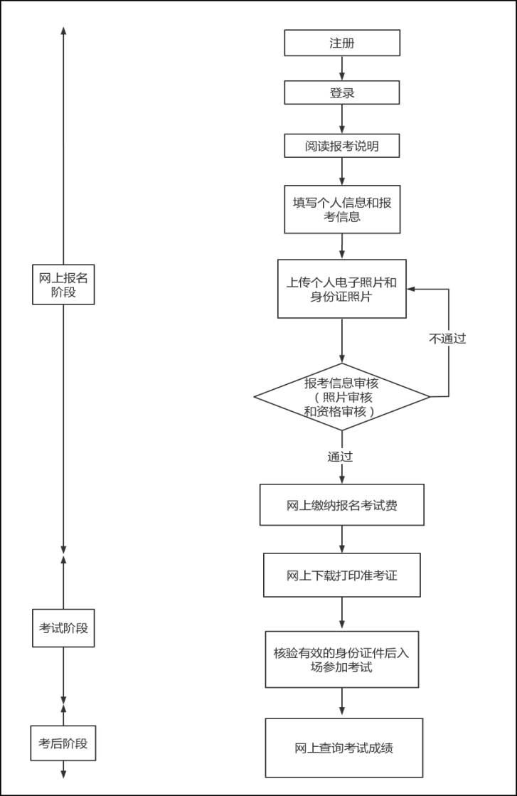 (2)考生要妥善保存注册的用户名和密码。报名信息或照片未经审核或审核不通过的考生不能进行网上打印准考证。在考生照片上传48小时内,我校对考生的报名信息进行审核,同时对考生上传的电子照片按规定标准进行审核。