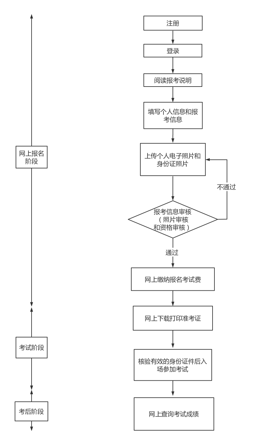 2)考生要妥善保存注册的用户名和密码。报名信息或照片未经审核或审核不通过的考生不能进行网上打印准考证。在考生照片上传48小时内,我校对考生的报名信息进行审核,同时对考生上传的电子照片按规定标准进行审核。