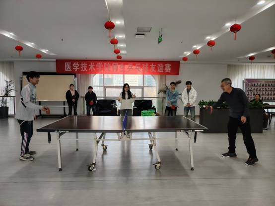 为丰富校园文化生活,展现学院师生良好的精神风貌,促进师生情感交流,医学技术学院于12月7日,在科技楼四楼成功举办了师生乒乓球友谊赛。学院党委副书记吴子钊、副院长杨波一起参加了比赛。