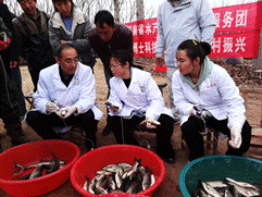 特别是去年,在延津县一养殖户曹贵晨的渔场使用疫苗后,后期经科学管理,在没有使用其他杀菌剂的情况下,基本上没有鱼病的发生,实现了草鱼的绿色高产。在验收现场,吸引了大批周围的水产养殖户及水产饲料企业前来参观咨询,并预定了今年的1000多亩养殖水面的疫苗防治服务计划,曹贵晨感言说:“现在农村最缺的就是科技,鱼病防治一直都采用传统化学药品,缺少绿色免疫防控技术,今年采用了疫苗防治后鱼成活率提高了近30%,以前每亩净利润最多也就5000元,今年将达到15000元,翻了3倍,还不用下药、捞病死的鱼,既省事又挣钱,“鱼博士”真的帮我们解决了大问题”。鱼类销售商马老板说:“注射过疫苗的成鱼耐运输,质量好,更受消费者的欢迎,以后我要优先销售注射过疫苗的成鱼,把我也拉进你们的微信群,以便了解更多信息。”六和水产饲料业务部陆斌总经理也表示,要给其用户积极宣传疫苗防预理念,并邀请团队对其销售业务员进行相关培训。