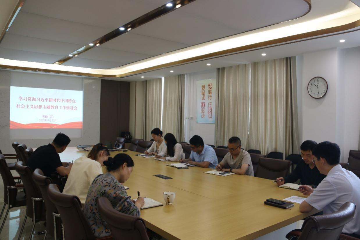 5月26日上午,明德书院在会议室召开学习贯彻习近平新时代中国特色社会主义思想主题教育工作推进会。书院党委书记王正晓,副书记李强、副处级组织员刘迎辉,各基层党支部书记出席会议,会议由王正晓主持。