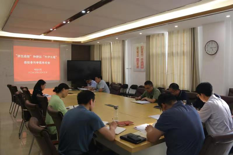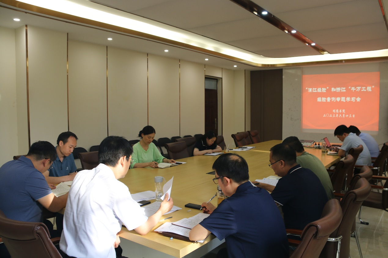 6月13日,明德书院党委召开党委理论学习中心组会议,专题学习“浦江经验”和浙江“千万工程”经验案例。书院党委书记王正晓、院长邱永建以及书院其他处级干部、各科室负责人参加会议。会议由王正晓主持。