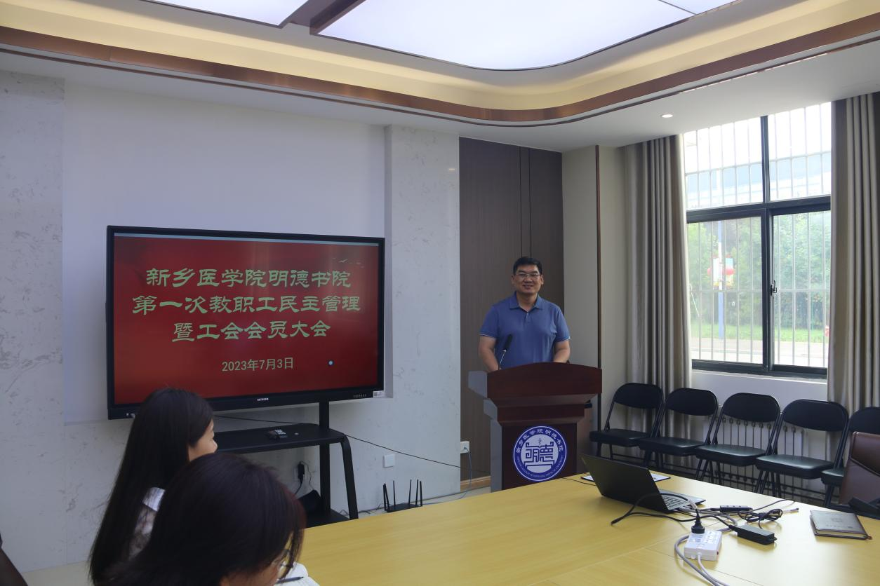 7月3日上午,明德书院第一次教职工民主管理暨工会会员大会在书院会议室召开,会议由院长邱永建主持,书院全体教职工参加了会议。