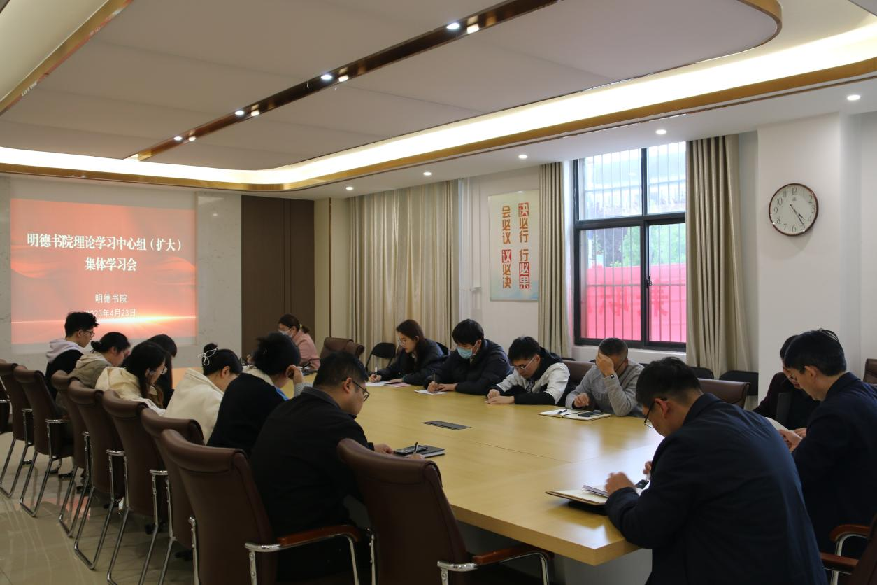 动员会后,我院进行了明德书院理论学习中心组(扩大)集体学习会。会上,党委副书记李强领学了《习近平新时代中国特色社会主义思想专题摘编》中关于“坚定不懈用新时代中国特色社会主义思想武装头脑、指导思想、推动工作”篇章。与会人员也结合各自的思想和工作实际,畅谈学习心得体会。