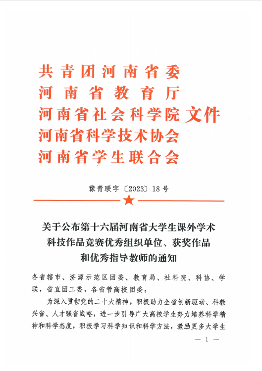 喜报!我院在第十六届河南省大学生课外学术科技作品竞赛中斩获佳绩!
