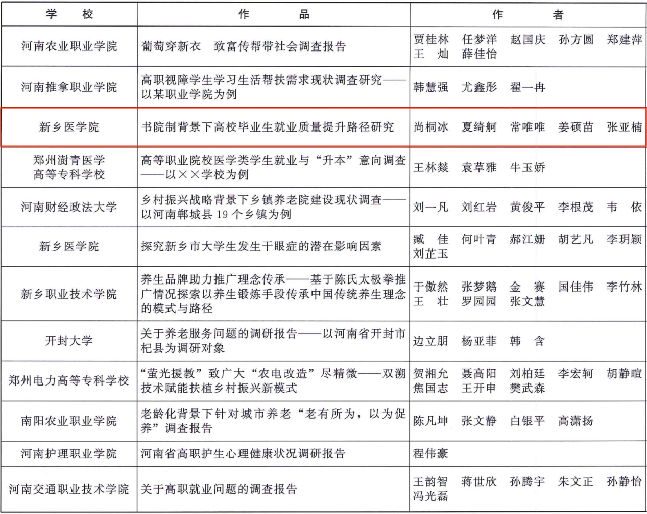 近日,由共青团河南省委、河南省教育厅、河南省社会科学院、河南省科学技术协会、河南省学生联合会共同举办的第十六届河南省大学生课外学术科技作品竞赛圆满结束。我院申报的《书院制背景下新时代医学生劳动观培育研究》等4项作品获奖,我院学生参与的《乳腺癌中E3泛素连接酶RNF187调控p53信号通路的机制研究》等6项作品获奖,实现了新的突破,展现了我院师生勇于创新、不惧挑战的精神。