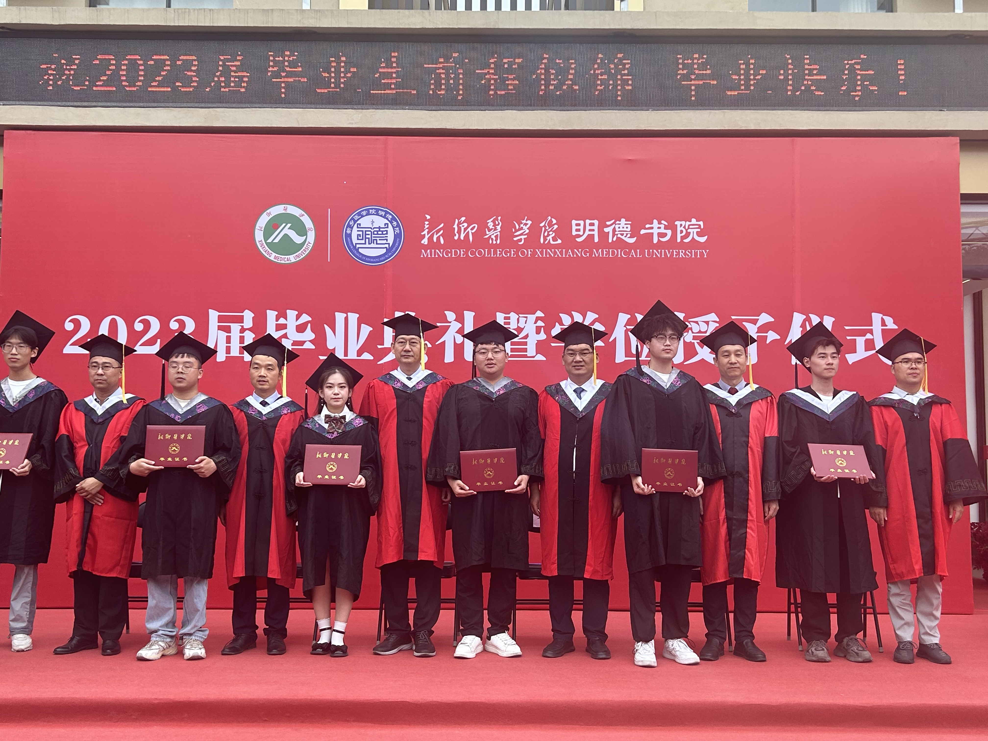 颁发学士学位证书并合影留念