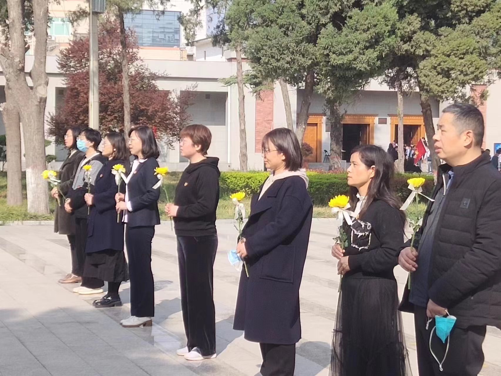 在烈士公墓纪念馆前,各位党员手持黄色菊花肃穆站立,庄严奏唱《中华人民共和国国歌》。之后,支部书记侯软玲宣读《缅怀先烈,感恩幸福》祭文,忽清斌和李成长向革命先烈敬献花篮,尹雅玲和李晓娟认真整理了挽联,全体人员三鞠躬表达对先烈的深切悼念。纪念仪式结束后,各位党员瞻仰了烈士纪念碑、烈士雕像、烈士墓区,并参观了烈士事迹陈列馆,让我们震撼的一个个年轻的英烈仿佛就在眼前,跃马疆场战顽敌的王锡山烈士、异国他乡献忠魂的廖亨禄烈士、卫国戍边一等功臣肖思远……