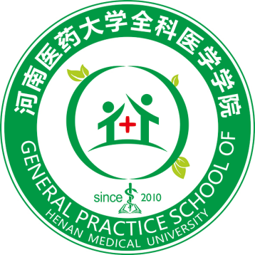 2.外圆以绿色为背景,上面标有河南医药大学全科医学学院,下面标有GENERAL PRACTICE SCHOOL OF HENAN MEDICAL UNIVERSITY白色字样。