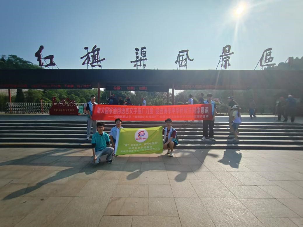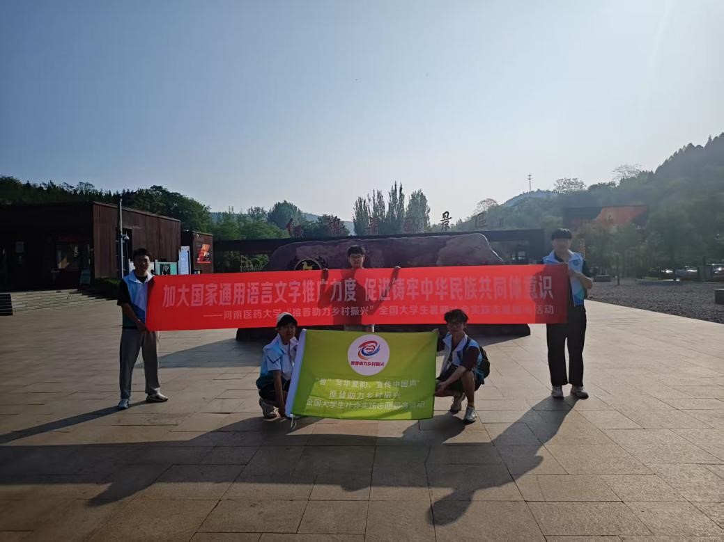 本网讯(图文/葛雪晗)为深入贯彻落实国家语言文字事业“十四五”发展规划,助力乡村振兴战略实施,将普通话推广与乡村振兴深度融合,2025年7月中旬,河南医药大学数理医学院“‘普’写华夏韵,宣传‘中国声’”实践团奔赴河南省安阳市红旗渠、南阳市杜岗村、驻马店市西平县及浙江省温州市等地,开展以“加大国家通用语言文字推广力度,促进筑牢中华民族共同体意识”为主题的暑期社会实践活动。10余名来自河南医药大学数理医学院的青年志愿者深入基层,通过精准调研、互动宣讲、场景化教学与医疗服务结合等创新形式,将普通话推广与乡村文化振兴、教育振兴深度融合,为乡村振兴注入语言动力。