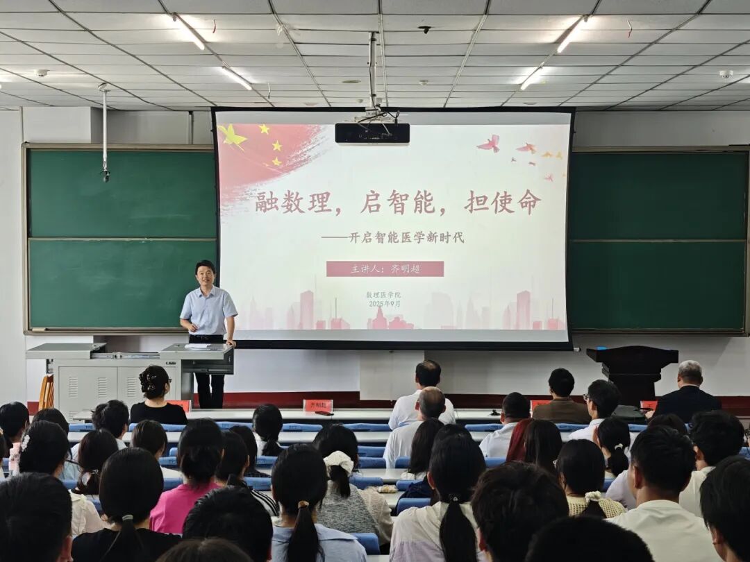 本网讯(图文/郭慧杰)金秋硕果,丹桂飘香。为使2025级智能医学工程专业新生明晰未来规划、筑牢使命担当,9月10日,学校党委组织部副部长、学院党委负责人齐明超以“融数理,启智能,担使命——开启智能医学新时代”为主题,举办了新生入学教育活动,为莘莘学子的大学之旅扬帆领航。
