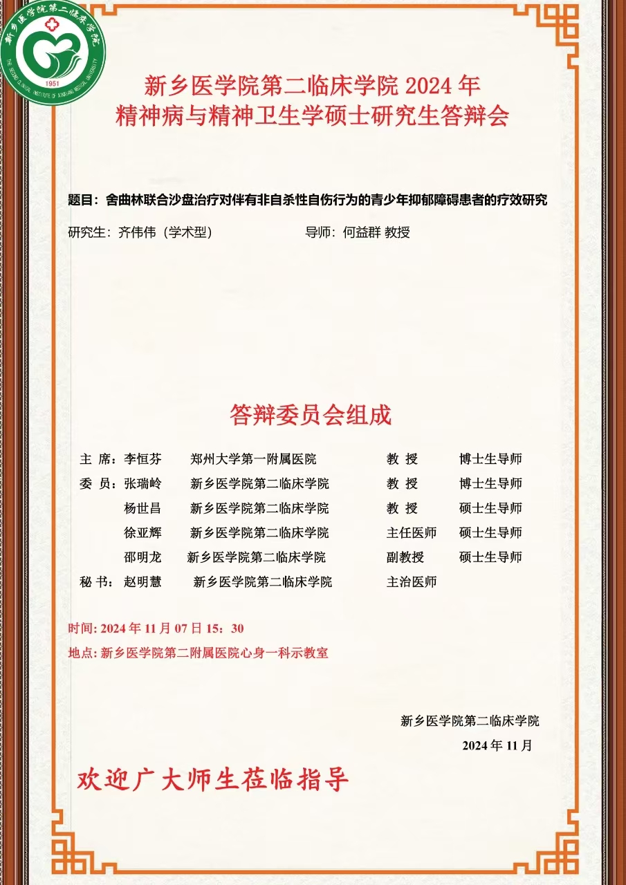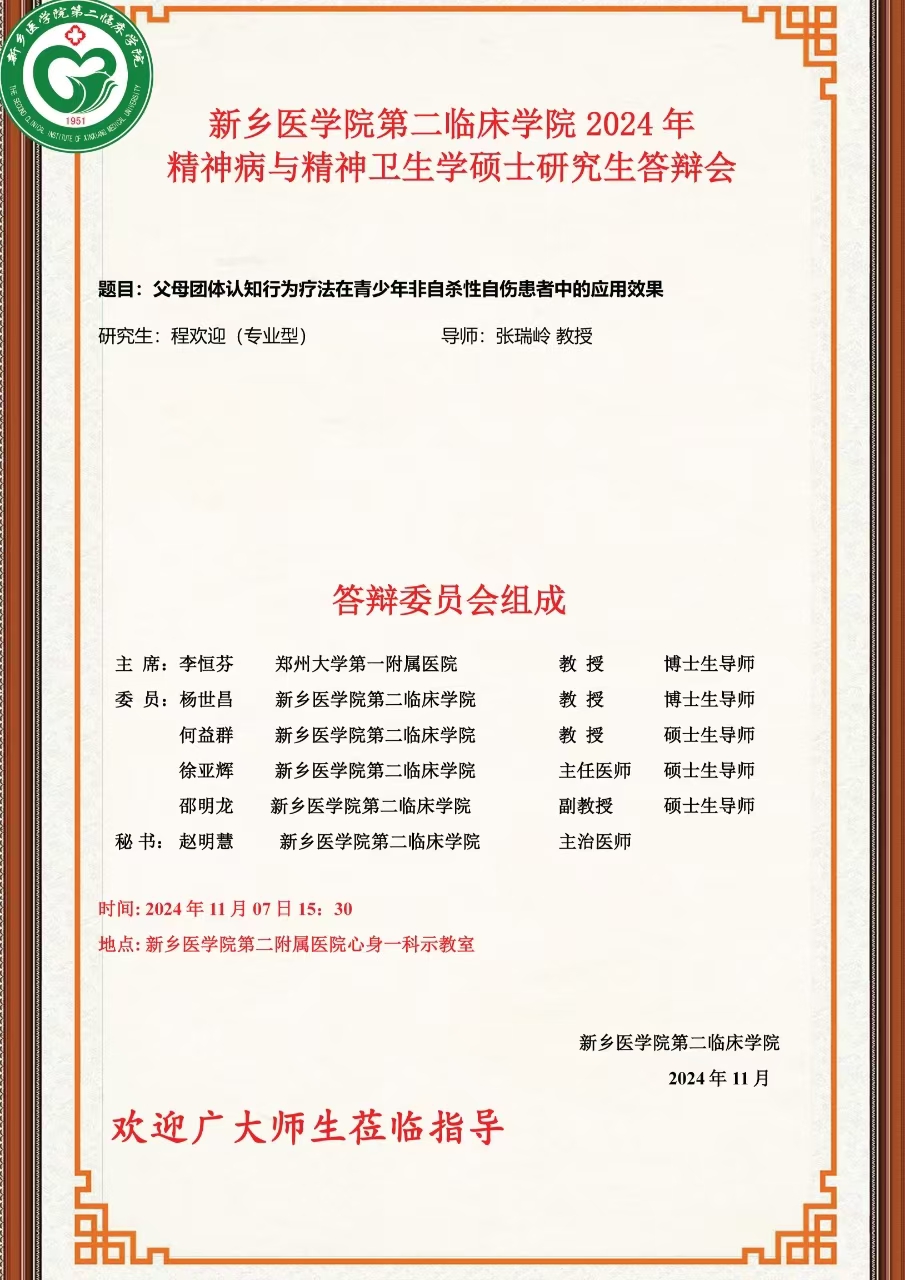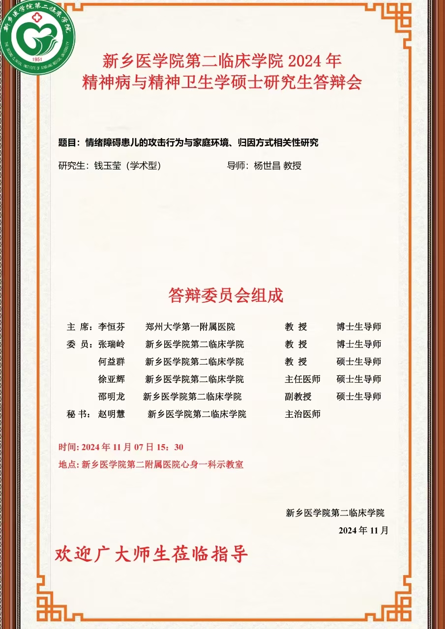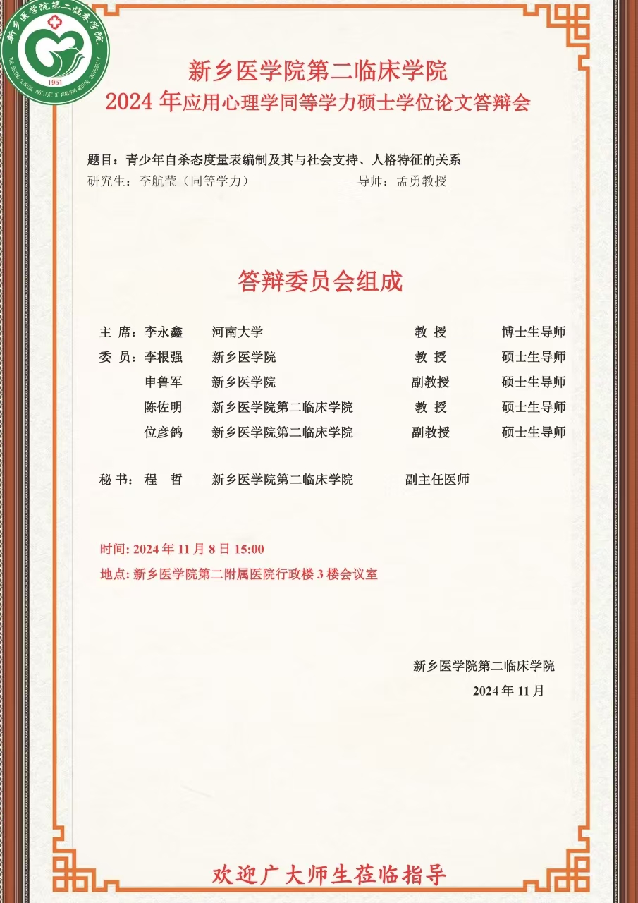 2024下半年华亿在线体育(中国)官方网站第二临床学院硕士学位论文答辩海报