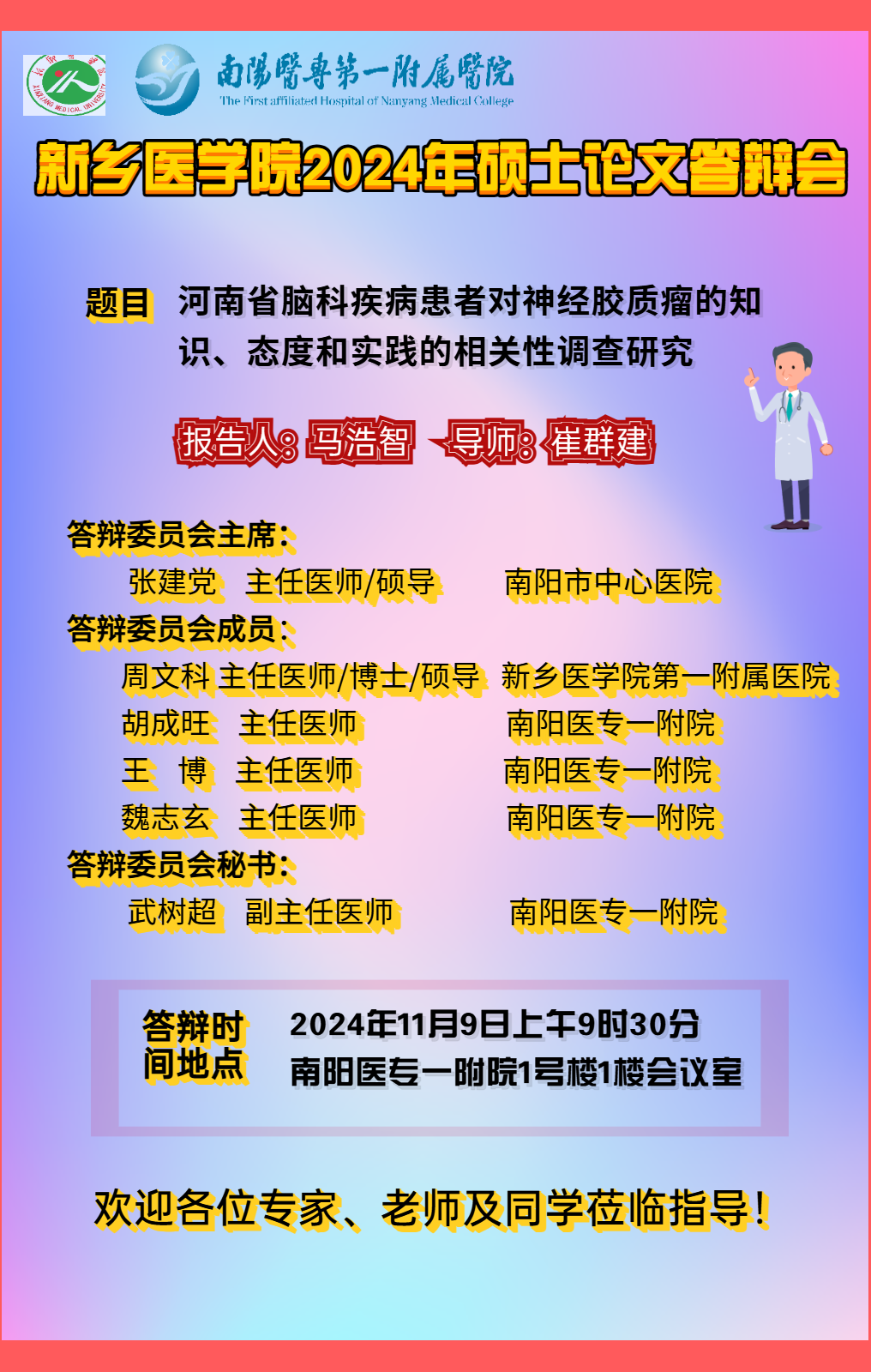 2024下半年华亿在线体育(中国)官方网站(南阳医专第一附属医院)硕士学位论文答辩海报