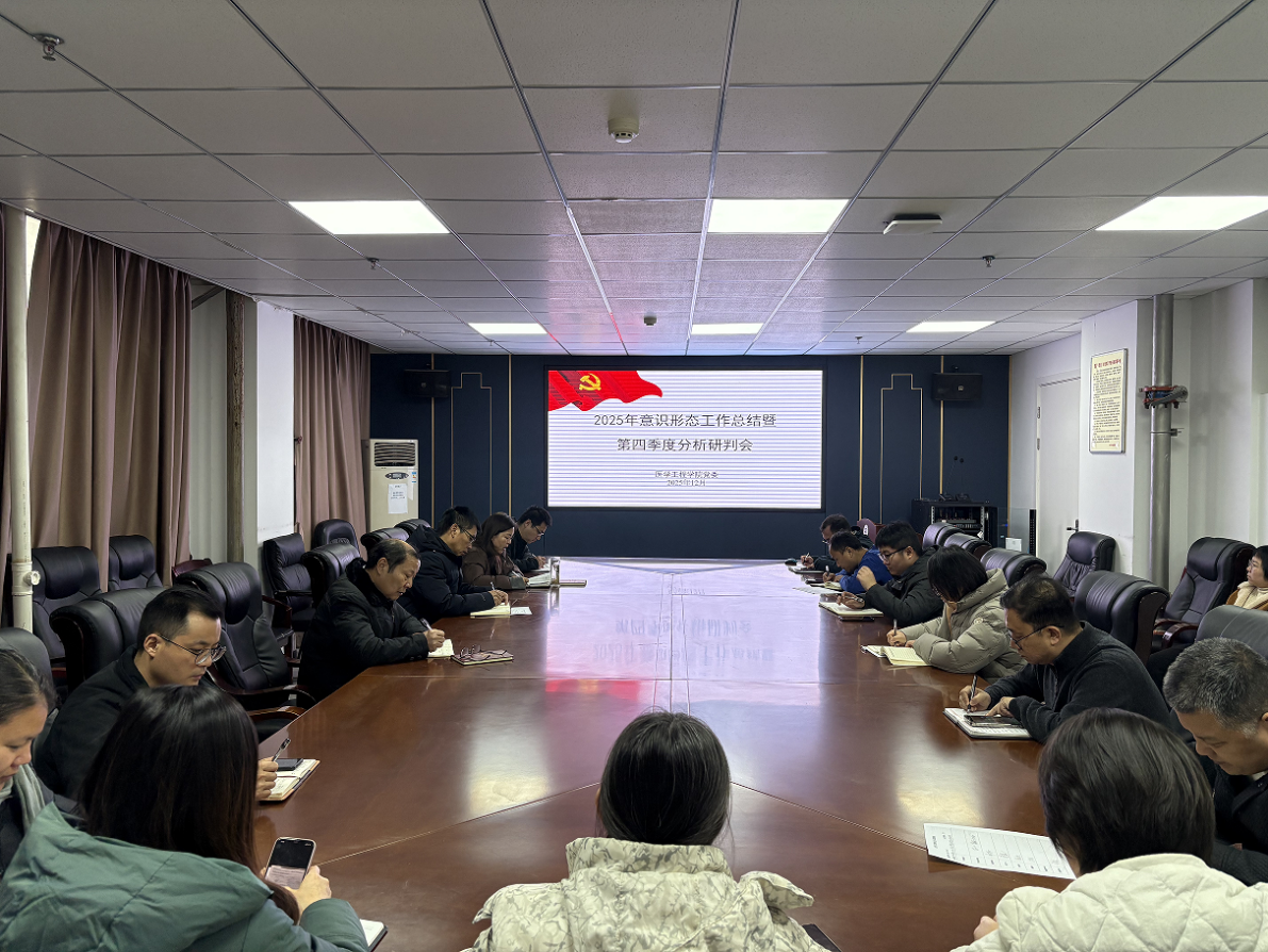 12月22日,我院在716会议室召开2025年度意识形态工作总结暨第四季度分析研判会,全体班子成员、科级干部、各支部书记参加会议。会议由党委书记王守英主持。
