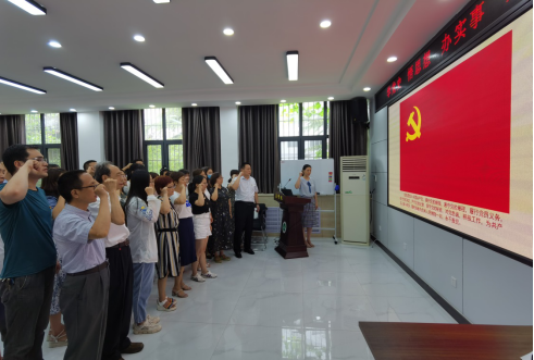 药学院教工第三党支部书记张涛对郗万富处长一行表示热烈欢迎,并介绍了此次联组活动的初衷。两位支部书记简要介绍了各党支部概况,带领双方人员做了互动介绍,为双方今后更好地推进工作交流做好向导。随后,双方支部全体党员面对党旗,庄严宣誓,重温入党誓词,进一步感悟初心使命、强化使命担当。