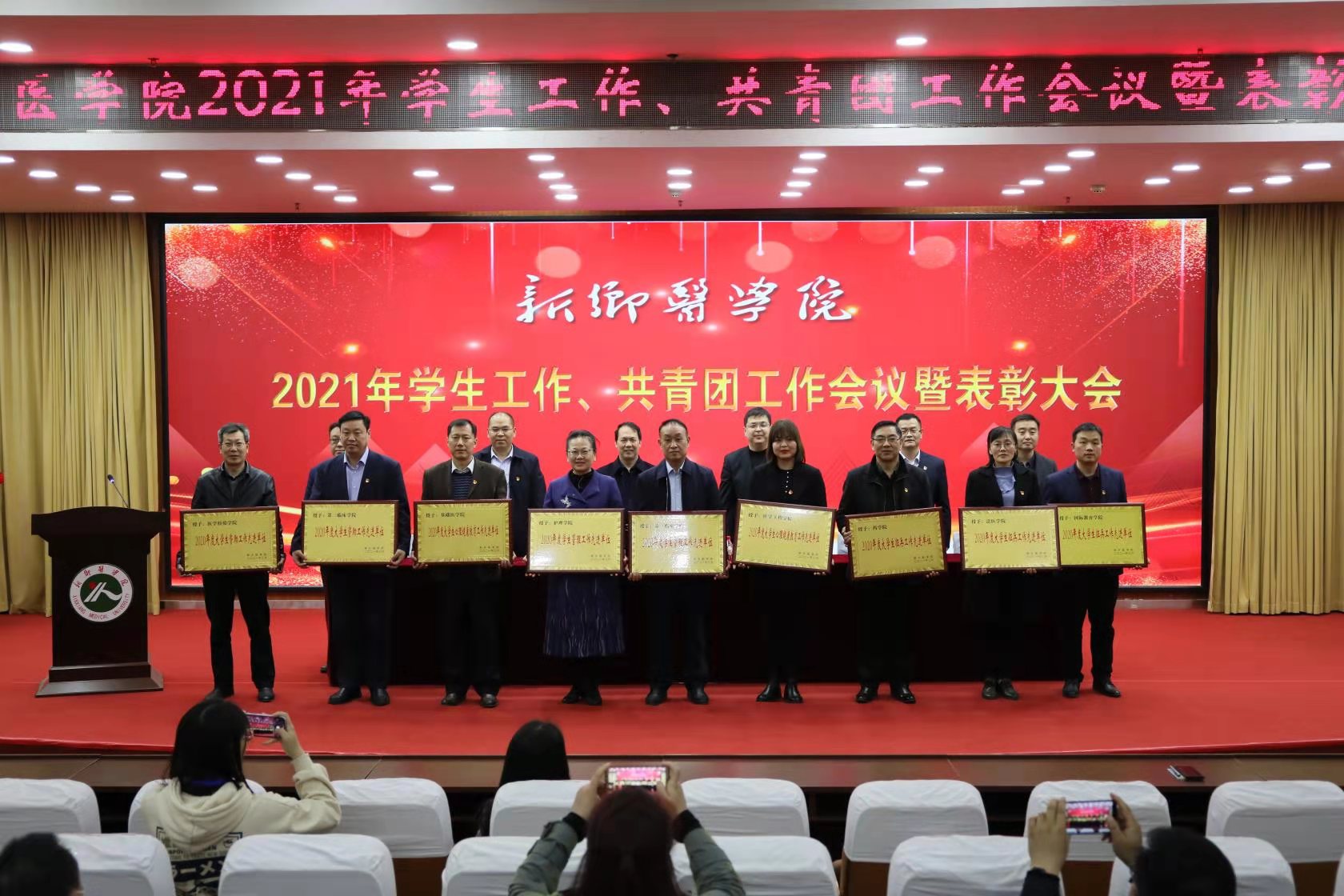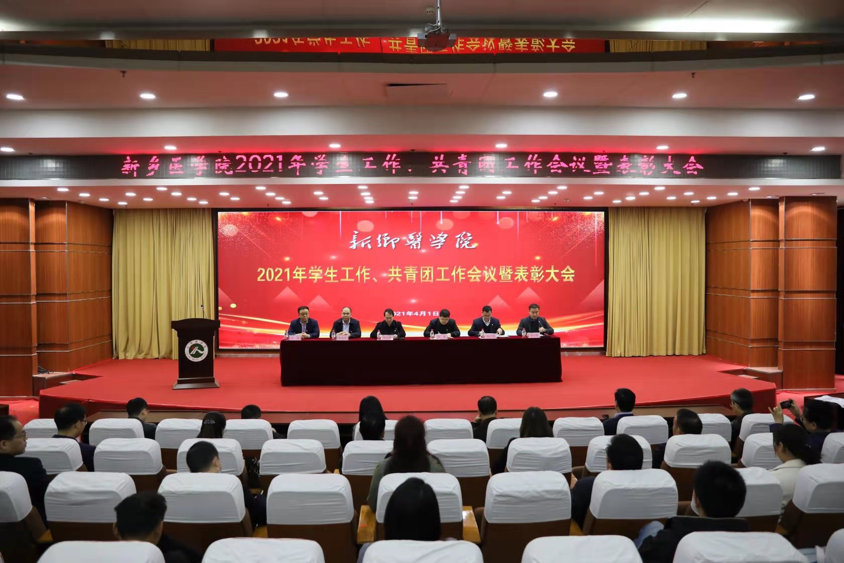 4月1日下午,在学校第一报告厅召开2021年学生工作、共青团工作会议暨表彰大会。校党委委员、副校长雒保军出席,校团委、教务处、学生工作部(处)、招生与就业处等职能部门负责人,各学院主管学生工作副书记、团委(总支)书记,临床学院主管学生工作副书记、副院长,团委、学工部全体人员,辅导员及学生代表,200余人参加会议。