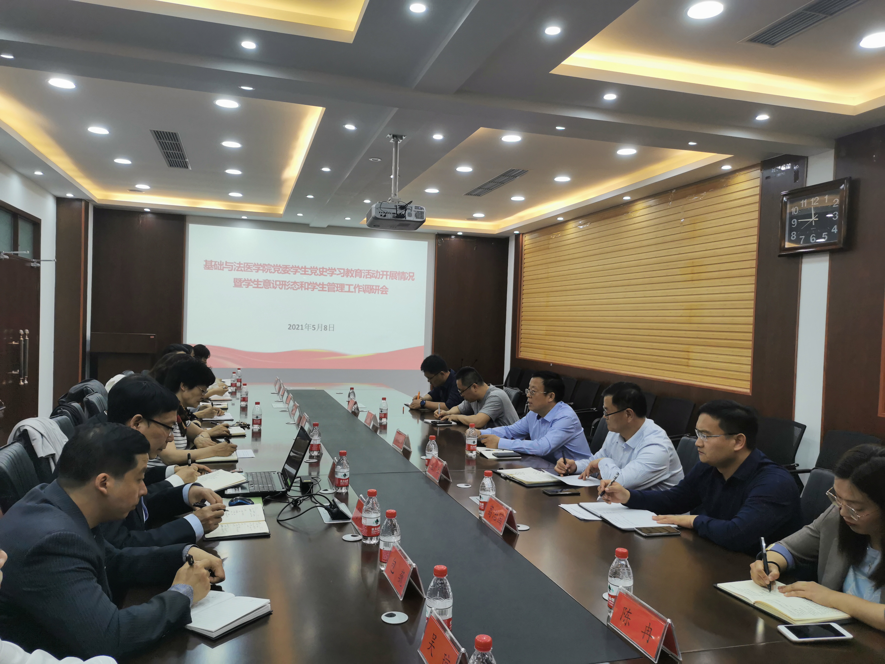 5月8日上午,校党委副书记郝红军到基础与法医学院党委调研督导学生党史学习教育暨学生意识形态工作和学生管理工作。党委宣传部、党委学生工作部负责人,基础与法医学院党委全体领导班子、全体辅导员、学生代表参加调研座谈。会议由党委学生工作部负责人主持。