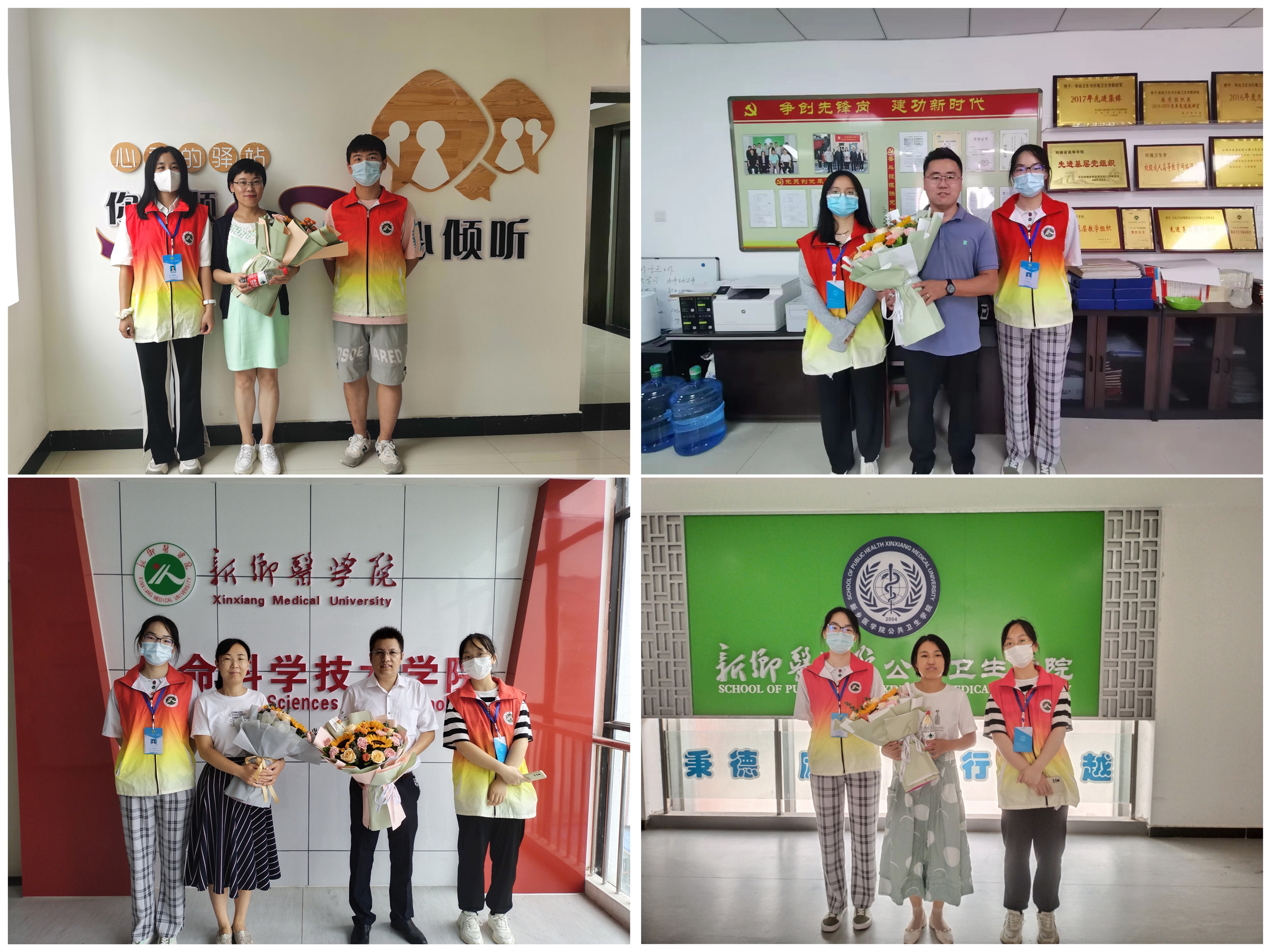 早上7:50,参与教师节文明献礼活动的同学们手捧鲜花,早早守候在各个校区,为辛勤工作的老师们献上鲜花及衷心的问候。同学们一声声诚挚的问候“老师您辛苦了!祝您教师节快乐!”带给老师们温馨的祝福。献礼学生代表走进教研室、实验室为授课教师送上鲜花、敬一杯茶,并深深鞠躬,以这种特殊而又传统的方式向老师表达着最简单朴素的感谢与祝福。与此同时,因疫情不能来校的同学也通过留言的方式献上自己对恩师的祝福。