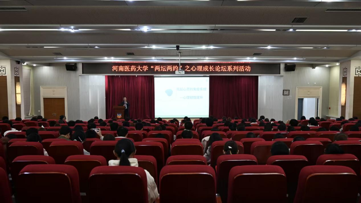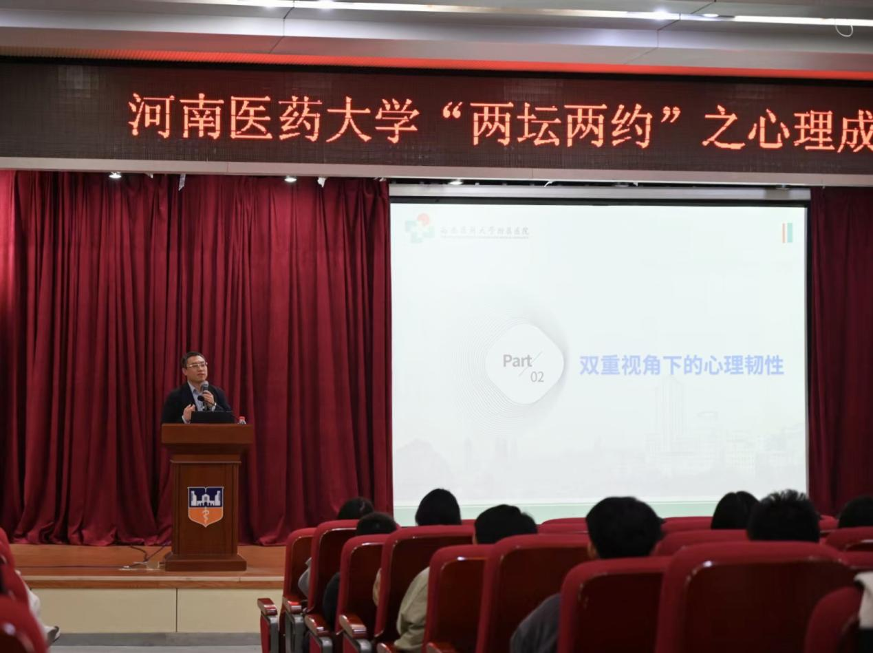 为提升学生心理韧性、优化人际关系、明晰职业方向,10月31日上午,河南医药大学“两坛两约”之心理成长论坛系列讲座在西校区问学楼一楼报告厅成功举办。本次活动由校党委学生工作部、学生中心联合主办,朱金富心理健康教育名师工作室、心理学院承办,特别邀请西南医科大学精神医学专业负责人刘可智教授带来《筑牢心灵的免疫系统——心理韧性提升》专题分享,为学子们应对逆境、成长成才注入心理能量。