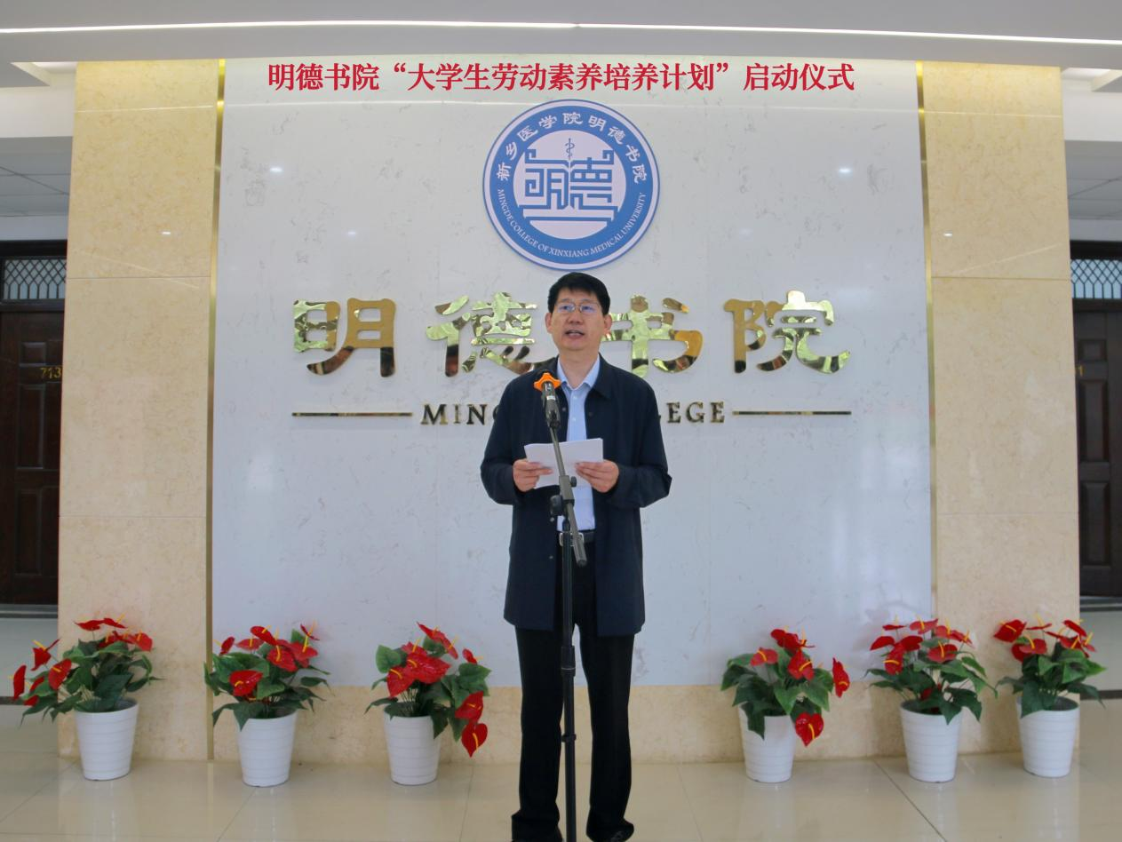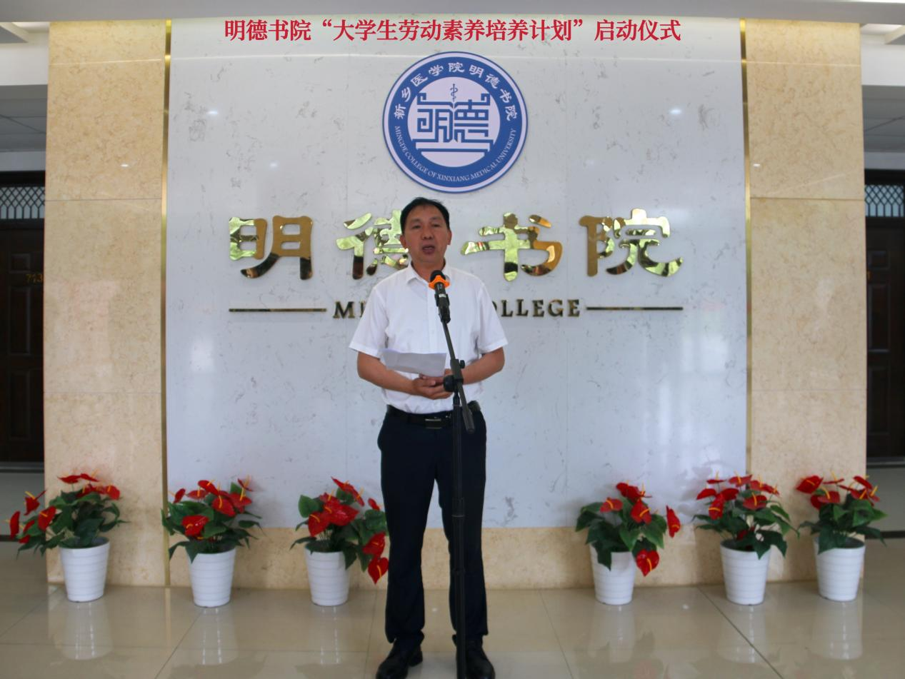 书院党委副书记李强宣读“大学生劳动素养培养计划”。他表示明德书院始终坚持将劳动教养与宿舍文化相融合,积极推动文明宿舍创建,丰富社区文化建设,促进学生素养养成,引导学生德智体美劳全面发展。
