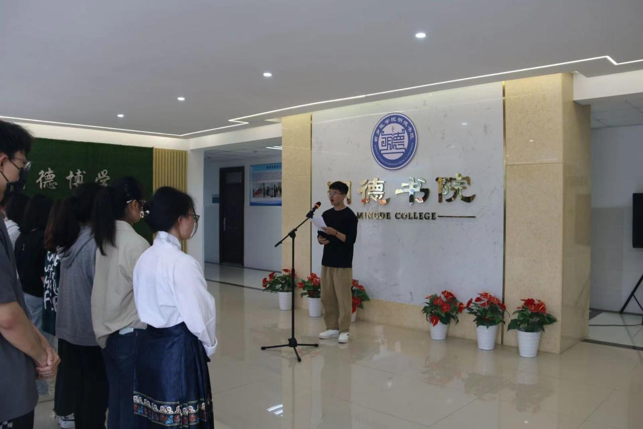 活动伊始,明德书院院长邱永建致启动仪式开幕词。他表示明德书院全面贯彻党的教育方针,以立德树人为根本任务,以培育和践行社会主义核心价值观为主线,全心全意为学生服务,高质量、高水平的做好学生教育服务工作。