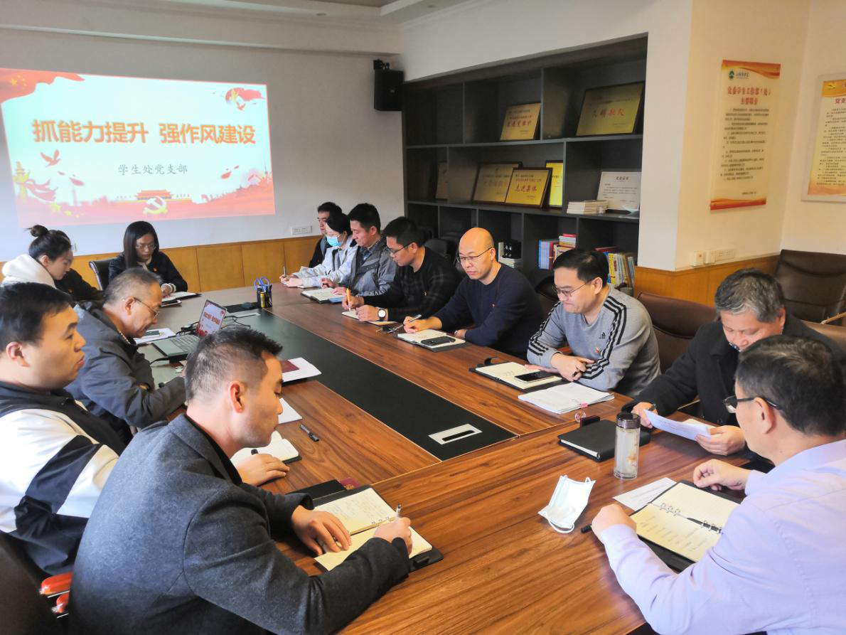 根据党委组织部《2021年11月份支部主题党日活动的通知》要求,11月18日下午,学生处党支部组织全体党员开展“抓能力提升,强作风建设”主题党日活动。
