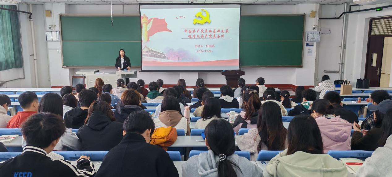 11月6日、7日和9日,本科生工作党委分别在务实楼四楼大会议室和博学楼3204教室组织了三次集中授课,张留芳和任威威为积极分子讲解了党的基本知识,习近平文化思想和党的宗教政策,领学了党的二十大、二十届三中全会的重要精神,组织学习了党的组织与纪律、党员义务与权利,以及入党积极分子申请入党的基本条件,党员的基本条件,入党积极分子的确定、教育和考察,大学生入党流程及注意事项等内容。