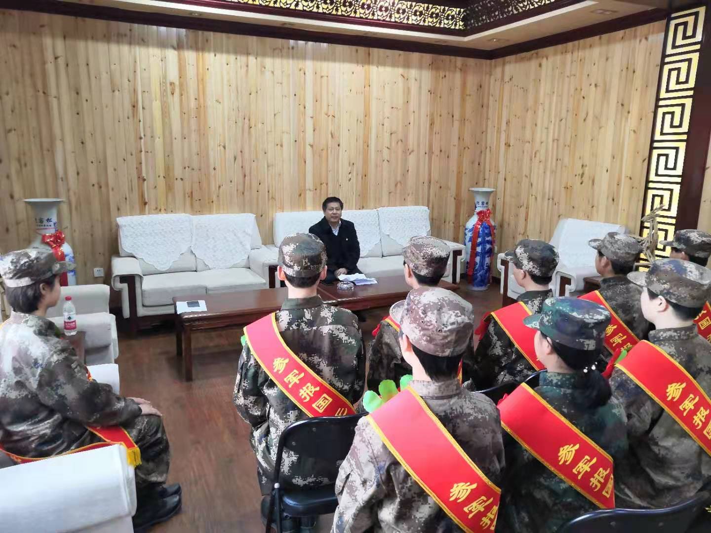 3月25日上午,武装部副部长石玉平一行三人来到新乡军分区女兵役前训练基地,组织我校2021年上半年入伍女生进行座谈,并向他们发放了一次性经济资助金和荣誉证书。
