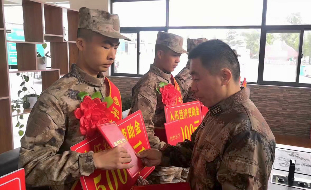 欢送会上,8名从学校报名应征的同学身着新配发的21式作训服,军姿挺拔、精神抖擞。谷巍峰和学校武装部相关负责人分别为即将入伍的学生一一佩戴绶带和光荣花,发放一次性资助金和荣誉证书。学校武装部相关负责人从“尽快转变思想,适应新的岗位角色;坚定理想初心,练就过硬军事本领;牢记新医校训,谱写精彩军旅华章”三个方面对即将踏入军营的8名准新兵提出了具体要求。