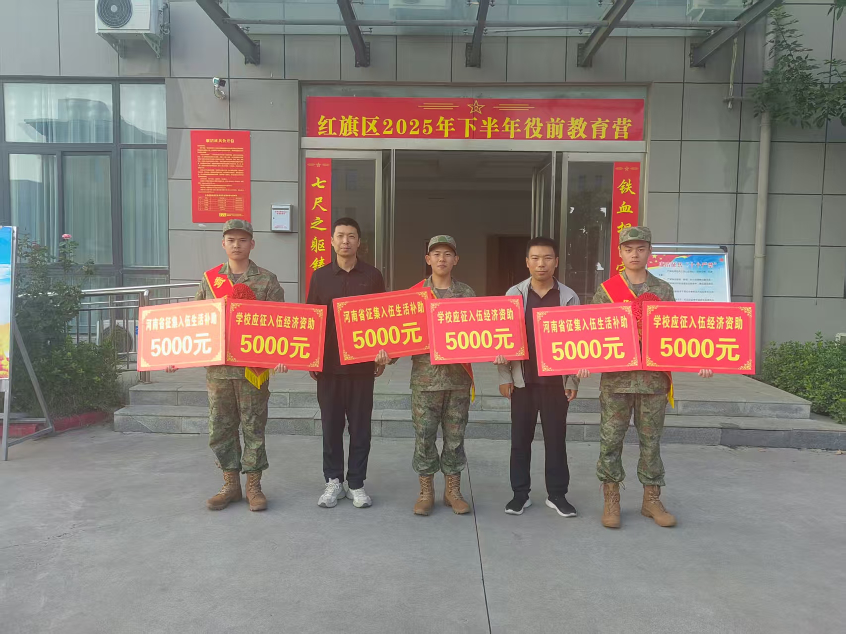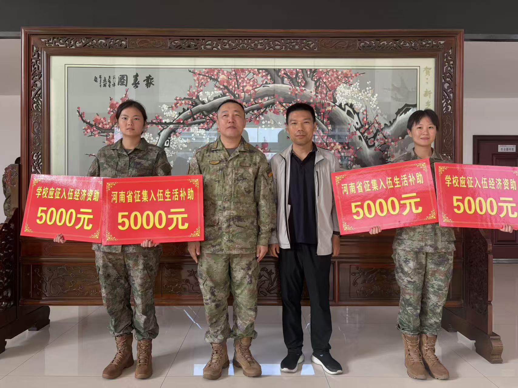 慰问最后,学校武装部负责人为每一位即将入伍的新兵发放了河南省征集入伍生活补助金和学校应征入伍经济资助金各5000元,表达了学校对同学们的实际支持与温暖关怀。同学们纷纷表示,感谢学校的培养与鼓励,定将不负重托、不辱使命,在部队安心服役、刻苦训练,努力成为一名合格的新时代革命军人,以优异的表现为国防和军队现代化建设贡献自己的青春力量。
