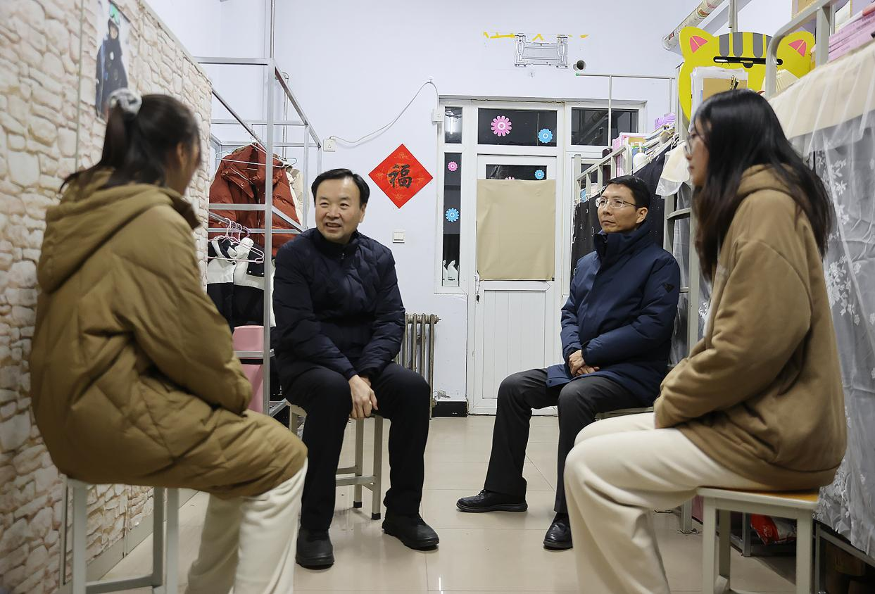 12月26日下午,校党委书记、校长任文杰,党委副书记朱武凌前往学生宿舍看望慰问甘肃地震家庭受灾学生,为他们送去学校的问候和关爱。党政办公室、本科生学院负责人,相关书院、学院负责人和学生工作负责人一同参加。