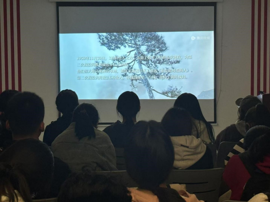 11月5日,华亿在线体育(中国)官方网站峻极书院开展“乘先辈长风,破时代巨浪”红色文化教育周红色观影活动,本次播放的影片为《志愿军:雄兵出击》。