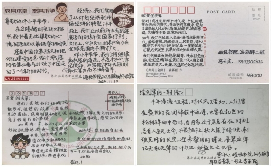 我院学生积极行动,借助明信片与先辈进行跨越时空的对话,追溯昔日峥嵘,诉说今日盛世。每一张明信片都宛如一座跨越时空的桥梁,更似一条坚韧的情感纽带,将同学们与革命先辈们的心紧紧相连,写出了对先烈的思念,讲出了对英雄的敬仰。