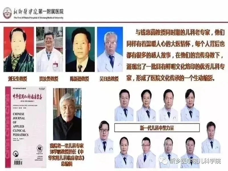 河南医药大学第一附属医院始建于1896年,儿科伴随着医院的创立而诞生,建国前,儿科已有单独的病房,但没有设科。二十世纪五、六十年代,随着一大批专家教授的陆续到来,医院的发展日新月异,一个独立且充满活力的儿科应运而生。1982年,豫北医专申请晋级为五年制本科医学院,儿科有着明显的人才优势,乃应运而生,为豫北医专晋级贡献了一份举足轻重不可磨灭的力量,临床医学和儿科学是我校升格为五年制本科医学院的两大奠基学科。1964年5月经主管部门同意,建立了独立的儿科病房。由于儿科病材多样,于1986年成立5个专业组,计有小儿心血管专业、新生儿专业、血液肾脏病专业、神经系专业、遗传代谢病专业。专业组的建立,使儿科医疗、科研水平获得大步前进,同时也积极参与全国性的儿科学教材编写工作,先后有编委、主编名列其中。在建系后的3年,特邀请北京医科大学、上海第二医科大学、沈阳中国医科大学的儿科医学专家教授来院进行指导讲学,在与专家座谈会期间,儿科提出拟创办儿科医学杂志的想法。后经北京儿童医院院长诸福棠教授定名为《实用儿科临床杂志》并亲笔题写刊名。儿科杂志的创办,极大提高了河南医药大学在国内的知名度。杂志自创办以来,以其实用与临床科研相结合的办刊方向,深得国内同行及读者的认可与赞许,于1992年被列为国内核心医学期刊,又经过主编、编委与编辑部的共同不懈努力,于创刊28年时正式加入中华医学会系列杂志大家庭,成为《中华实用儿科临床杂志》。
