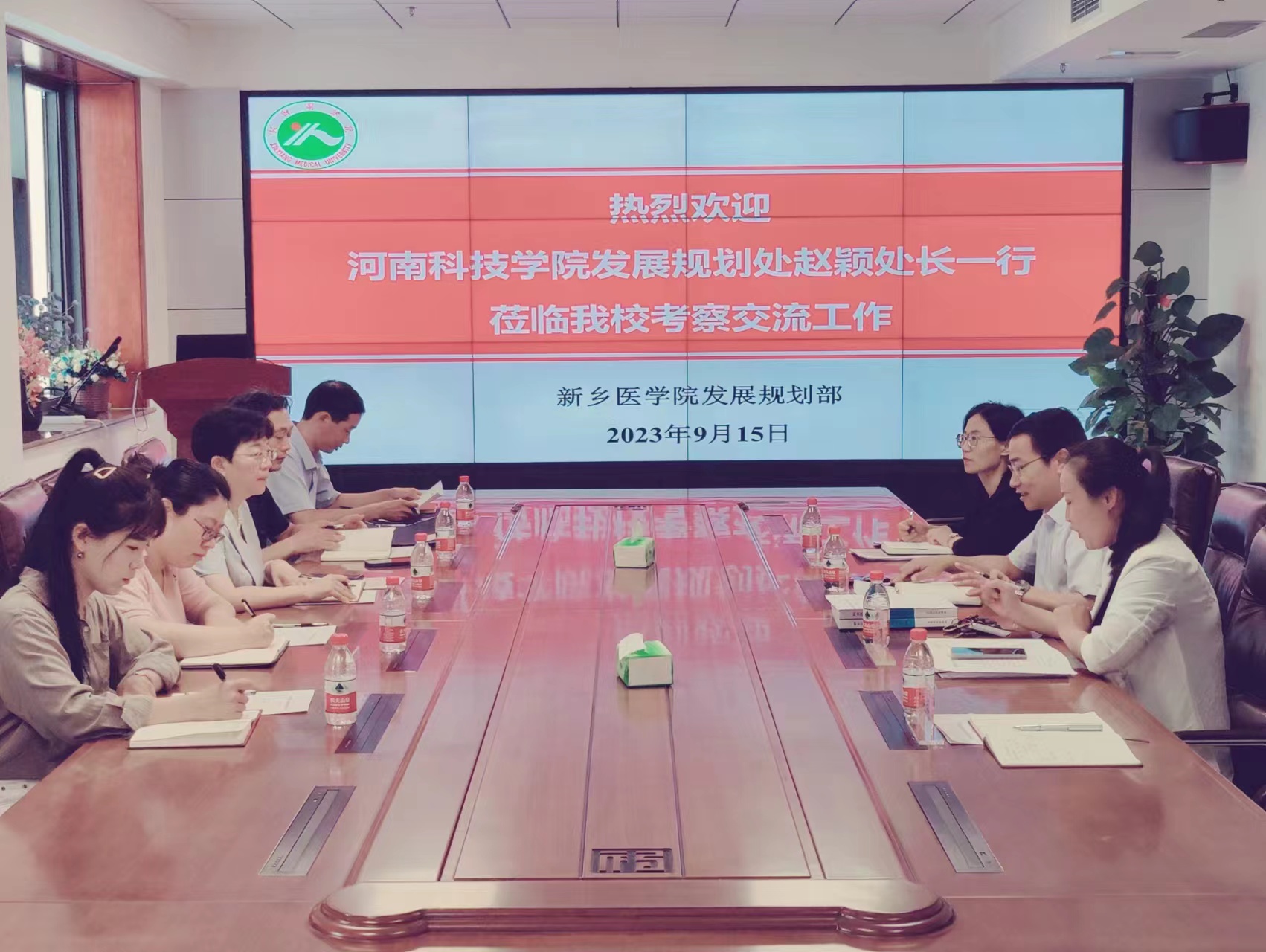 9月15日上午,河南科技学院发展规划处处长赵颖一行5人来校考察交流。座谈会在图书信息楼508会议室召开,我校发展规划部主任戎华刚带领部门全体同志参加座谈交流,会议由发展规划部副主任马巧双主持。