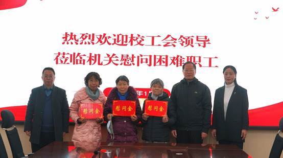 1月12日上午,校党委委员、工会主席邵金远带领工会有关负责同志到机关工会、医学工程学院工会、体育学院工会,看望慰问一线困难职工代表,详细了解他们的实际情况,并为他们发放困难帮扶资金,送上节日的慰问和祝福,鼓励他们坚定信心,克服困难。