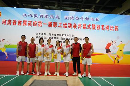 5月16-17日,由河南省教科文卫体工会主办的“凝心聚力跟党走,团结奋斗新征程”——河南省省属高校第一届职工运动会羽毛球比赛在黄淮学院举行。我校荣获道德风尚奖;工会干部代表队荣获工会干部组双打赛第七名,教职工代表队进入混合团体赛16强。