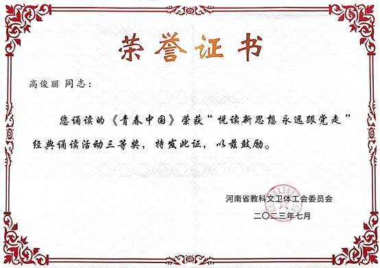 我校教职工在河南省教科文卫体系统“阅读新思想 永远跟党走”经典诵读活动中取得佳绩