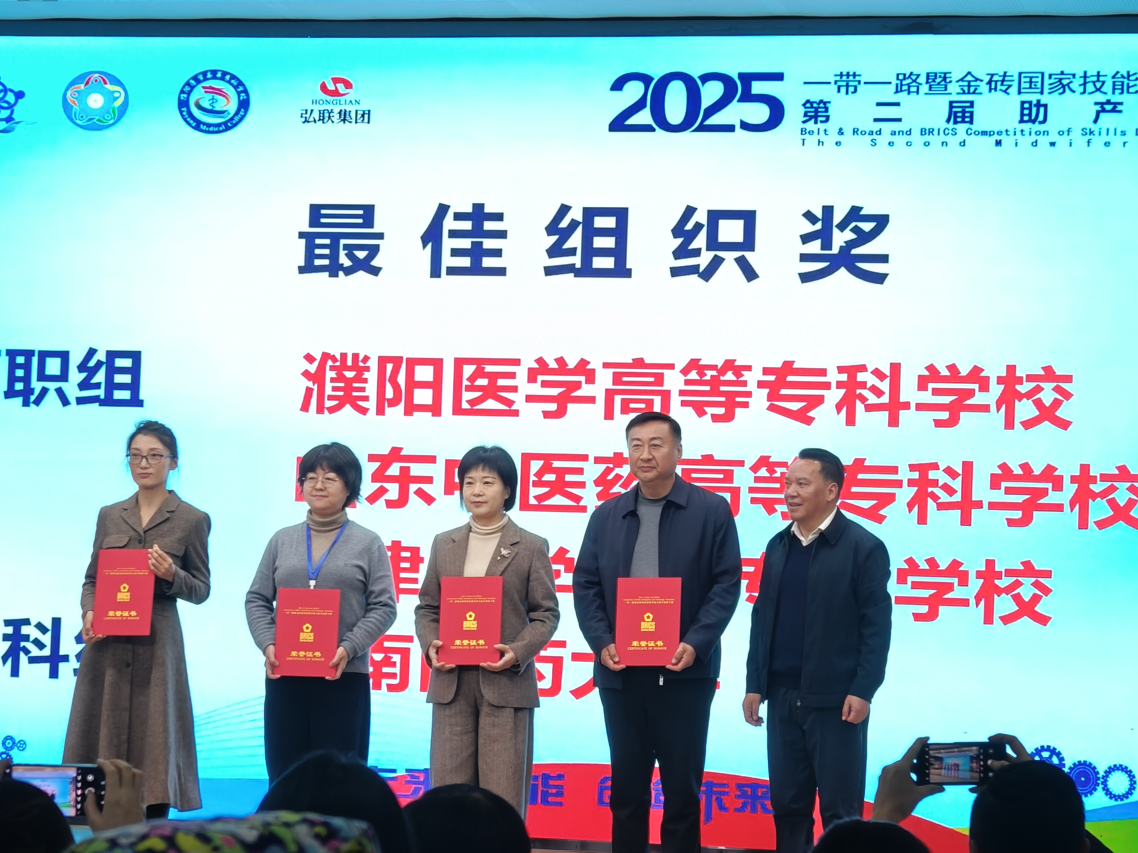2025年12月5日至8日,第二届 “一带一路暨金砖国家技能发展与技术创新大赛” 助产技能赛项在濮阳医学高等专科学校圆满落幕。本届赛事吸引了全国33所高校的66名选手同台竞技,我校助产专业学子姜帅歌、牛翔凭借扎实的专业功底和出色的临场表现,一路过关斩将以绝对优势荣获本科组一等奖(第一);指导教师杜敏霞、高晓磊因悉心指导、成效显著,获评优秀指导教师;学校更凭借完善的组织保障与整体突出表现,斩获最佳组织奖,实现了竞赛成绩与综合表现的双重突破。这也是河南医药大学更名后,学院斩获的首个国家级荣誉,为校争光!