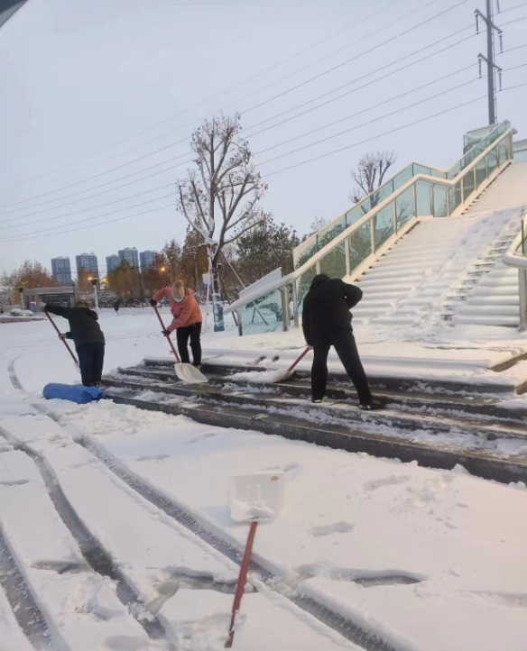 12月11日,暴雪来临,为防止路面结冰、影响师生出行,后勤保障部组织职工投入路面除雪,过街天桥、学生公寓、教学楼、家属区都能看到后勤人的弓背前行、奋力推铲的身影。先进的无人机播撒除雪剂,对体育馆、餐厅、快递站等大跨度建筑物屋顶积雪进行清除,防止出现积压坍塌事故。同时,后勤保障部还加强与师生之间的沟通协调,及时发布除雪进度和安全提示信息,让师生了解校园除雪情况,并提醒大家注意安全出行,为师生出行、安全生活扫出一条平安路。