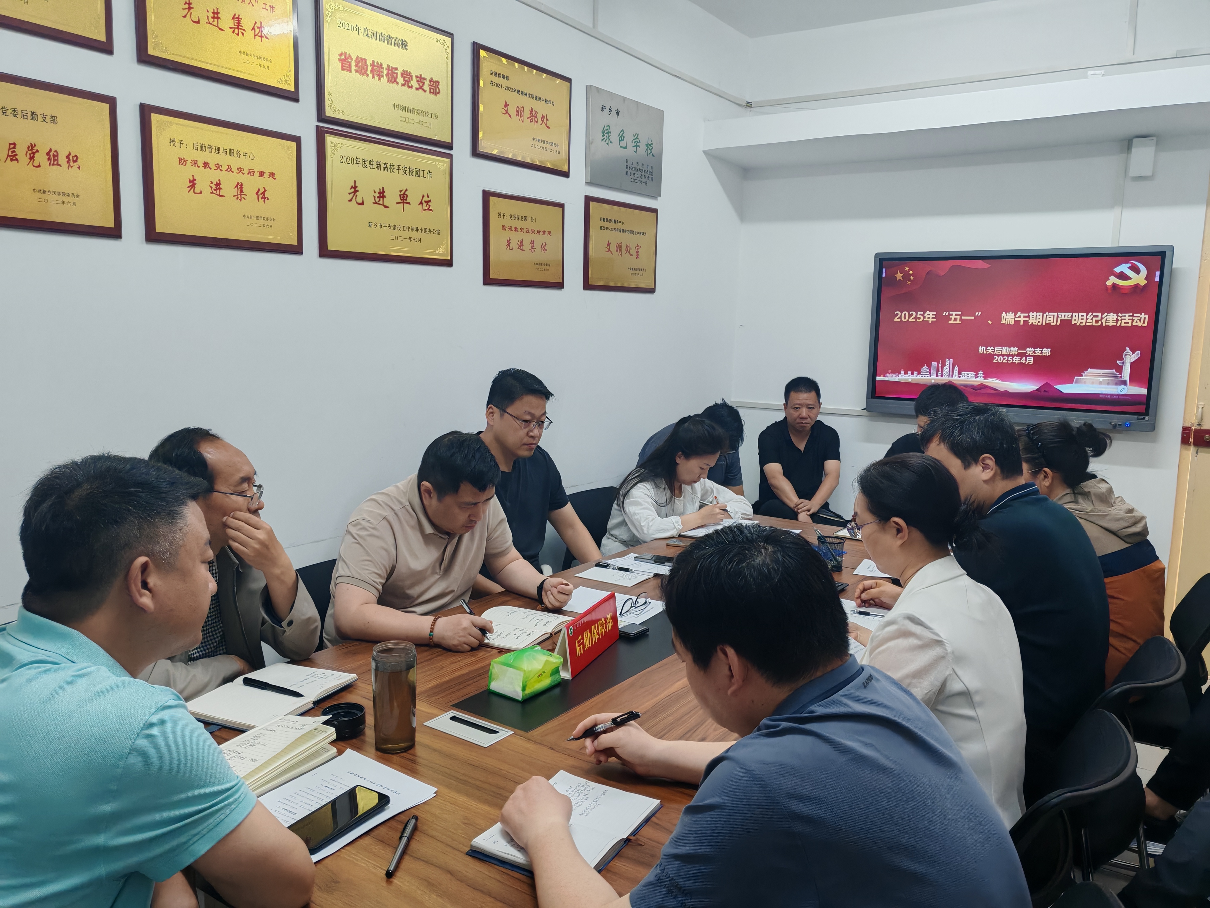 2025年4月29日,机关党委后勤一支部在务实楼二楼会议室组织开展2025年“五一”、端午期间严明纪律活动,全体党员参会,会议由党支部书记史世锋主持。