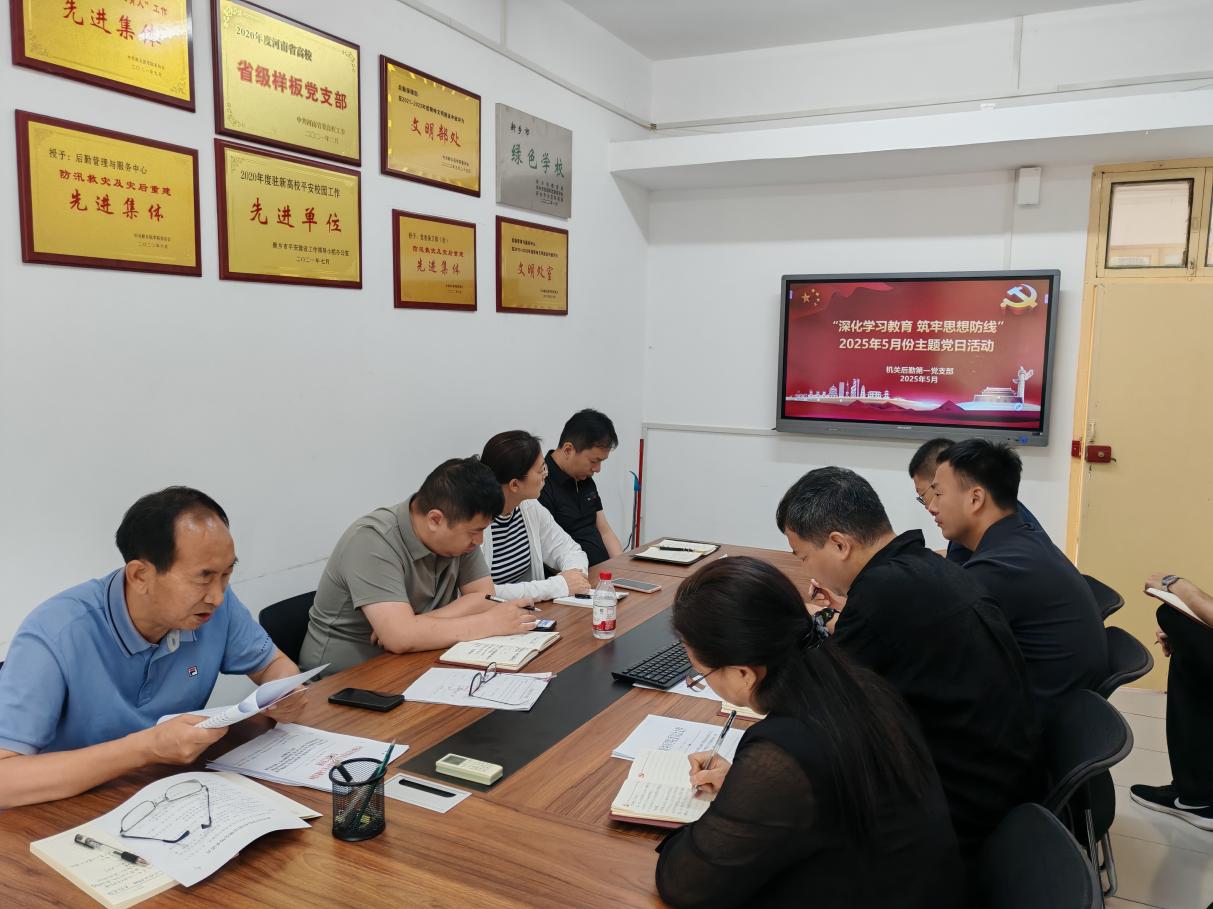 2025年5月29日,机关党委后勤一支部在务实楼二楼会议室组织开展5月份“深化学习教育 筑牢思想防线”主题党日活动,全体党员参会,会议由支部组织委员武亚昆主持。