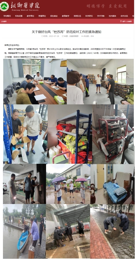 受台风“杜苏芮”影响,7月28日,新乡市防汛抗旱指挥部发布了关于启动防汛Ⅲ级应急响应的通知。后勤保障部及时掌握汛情信息,在校园网发布了《关于做好台风“杜苏芮”防范应对工作的紧急通知》,提示全校各单位及全体师生做好强降雨应对工作,确保学校安全度汛。
